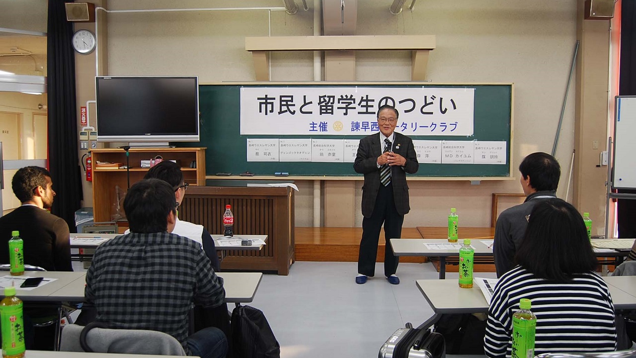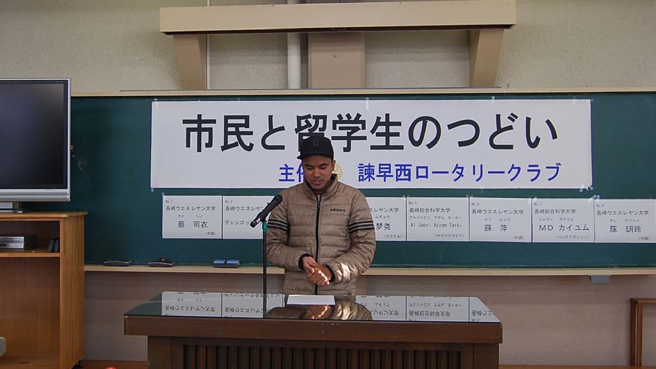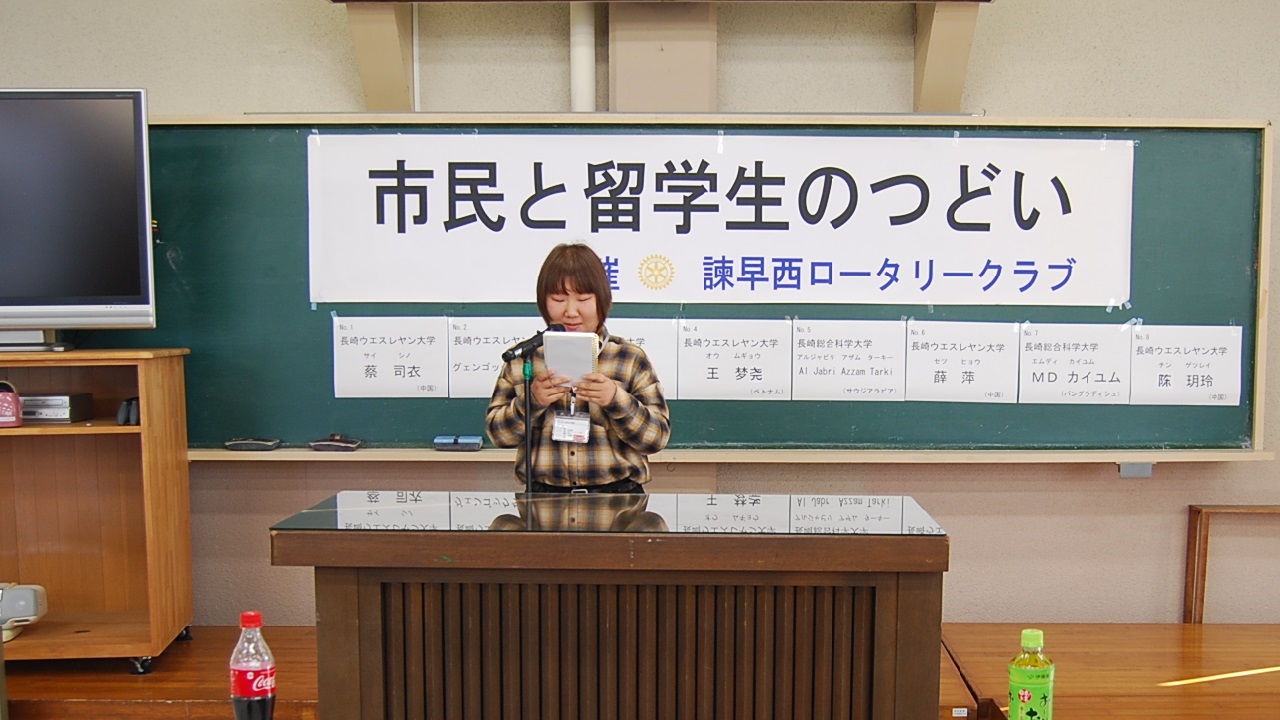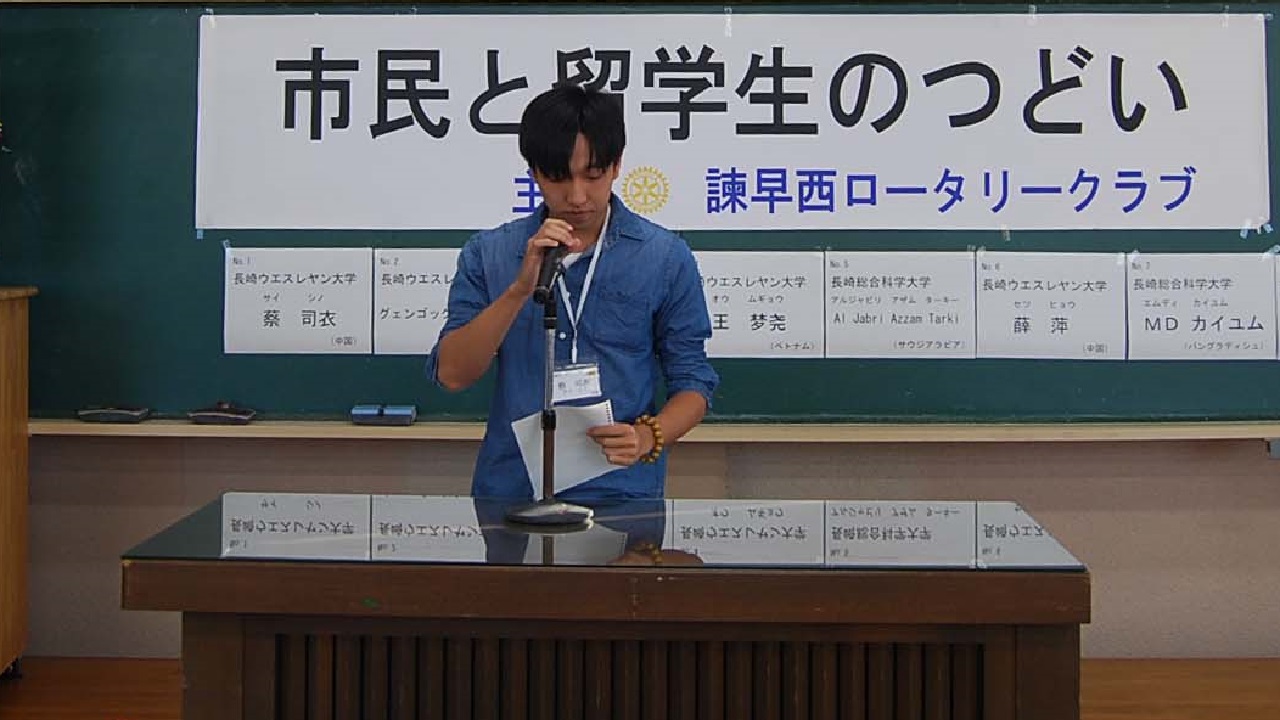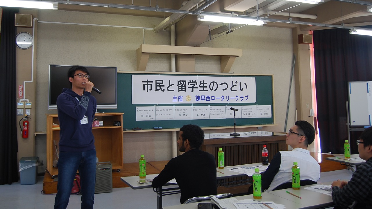 今年は2日間とも天気は晴天に恵まれました。1日目は千々石少年自然の家、研修室にて、留学生8名のスピーチコンテストを開催し、最優秀賞に総科大のMDカイユムさん(バングラディシュ)、RC会長賞にウエスレヤン大学のグェンゴックタオグェンさん(ベトナム)、いさはや国際交流センター賞にウエスレヤン大学のオウ ムギョウさん(中国)が入賞されました。素晴らしい語学力、表現力、内容でした。