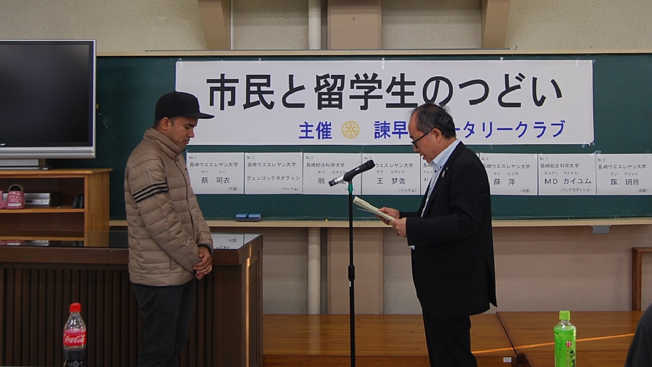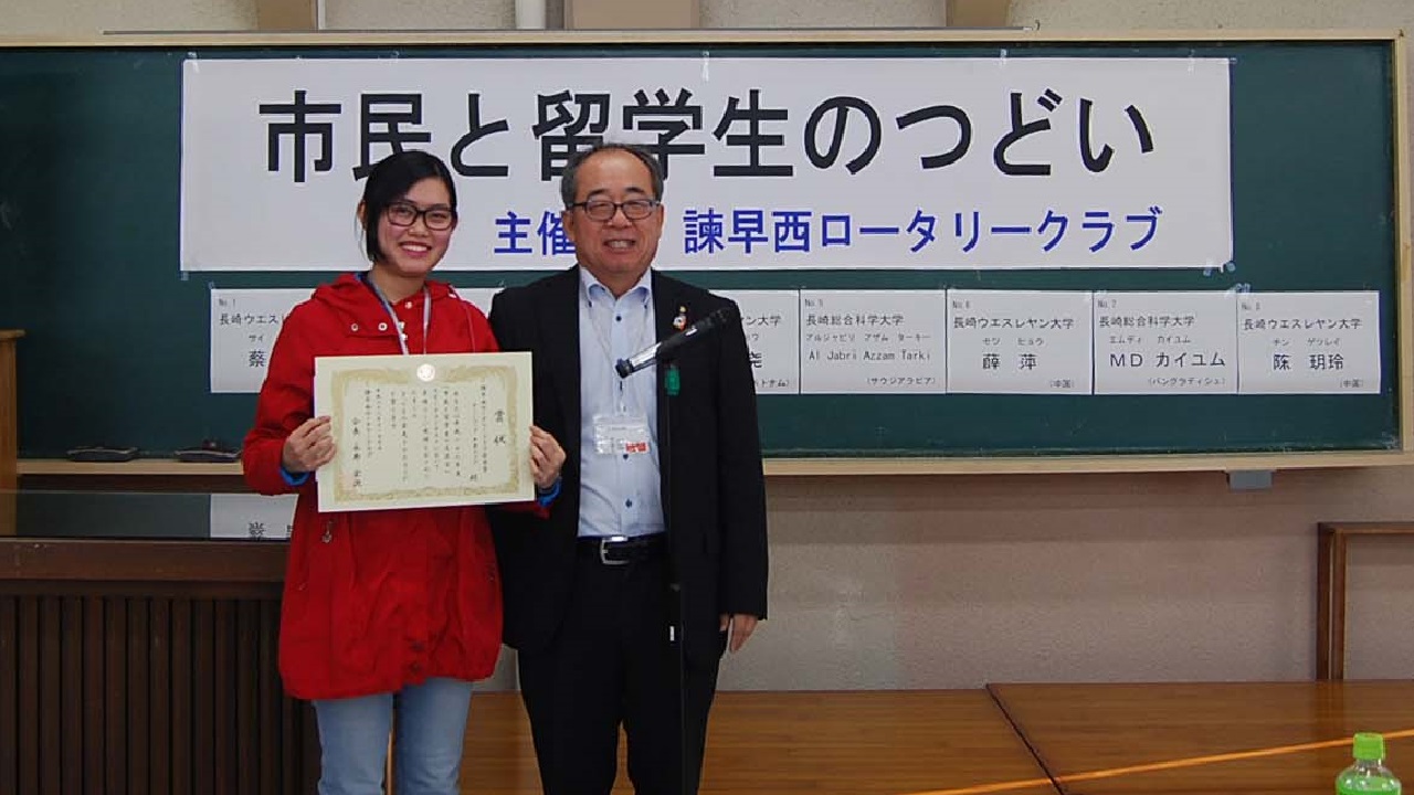 ロータリークラブ会長賞 グェンゴックタオグェンさん(ベトナム)長崎ウエスレヤン大学