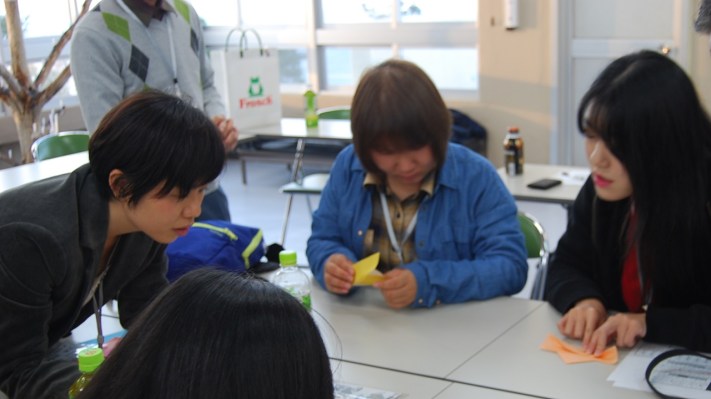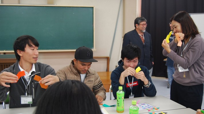 その後は日本の文化を体験する時間として『折り紙』を国際交流センターのスタッフの方よりご指導いただき、留学生同士の交流を深め、楽しい時間をすごしました。